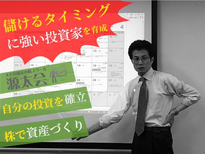 大岩川源太の私塾である『源太会』。運用テクニカルを基本に、「株の本質」を実践的に教えます。株式市場の意味と考え方を熟知した人は、儲かるタイミングに強くなります。通常の市場であれば、年間10~40%のリターンを安定的に実現できるようになりましょう。